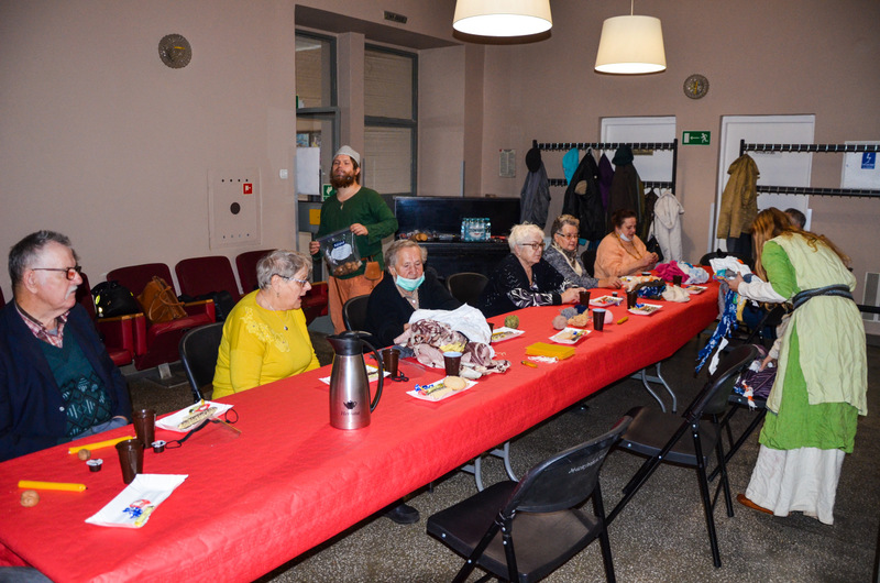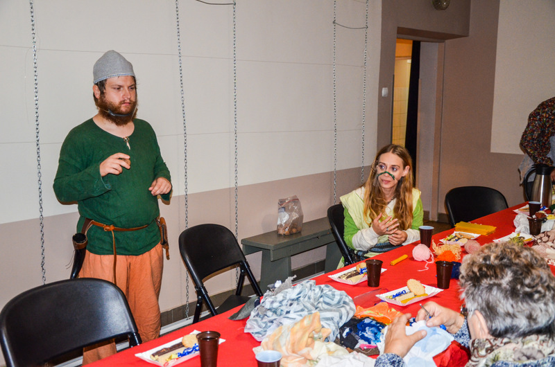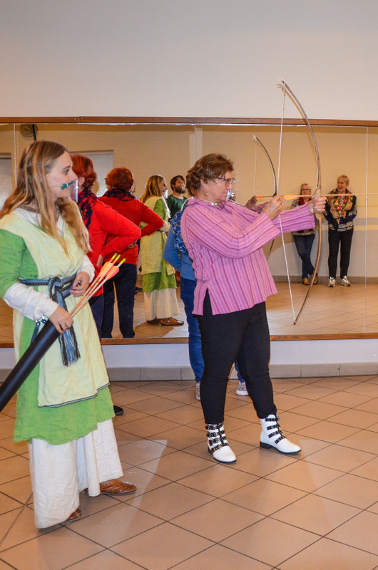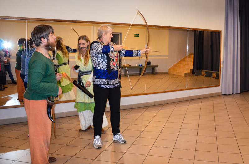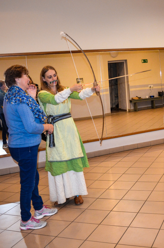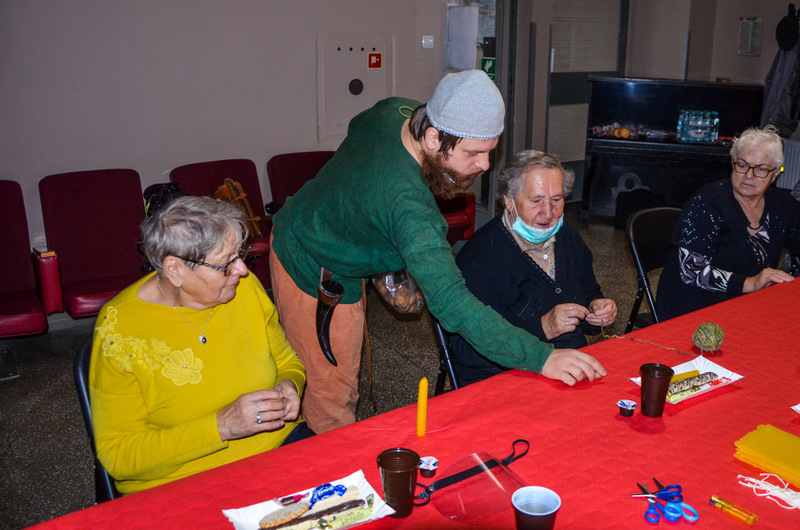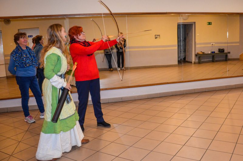 Seniorzy podczas 3-godzinnego spotkania mieli okazję uczestniczyć w tańcach średniowiecznych, wykonać świecę z wosku pszczelego oraz laleczkę motankę, a także postrzelać z łuku.