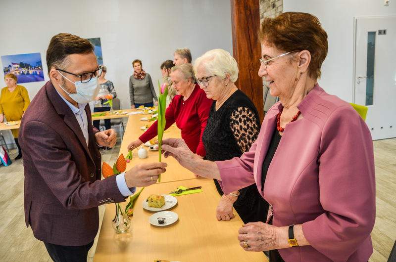 Spotkania rozpoczął Tomasz Siekierka, który powitał Seniorów, składając najszczersze życzenia. Dyrektor MGOPS nie krył swojej radości z możliwości spotkania z Klubowiczami po tak długim czasie. Następnie każdy z uczestników Dnia Kobiet i Mężczyzn otrzymał tulipana. Część artystyczną poprowadziła niezawodna animatorka, Joanna Nowakowska.