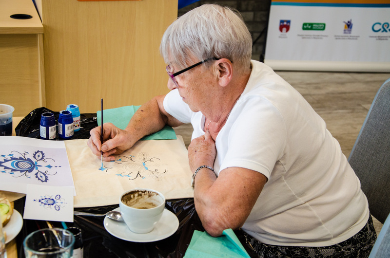 Za nami warsztaty rękodzieła artystycznego w ramach projektu pn. “Smaki i uroki Krajny”. Podczas zajęć seniorzy malowali motywy haftu krajeńskiego na bawełnianych torbach.