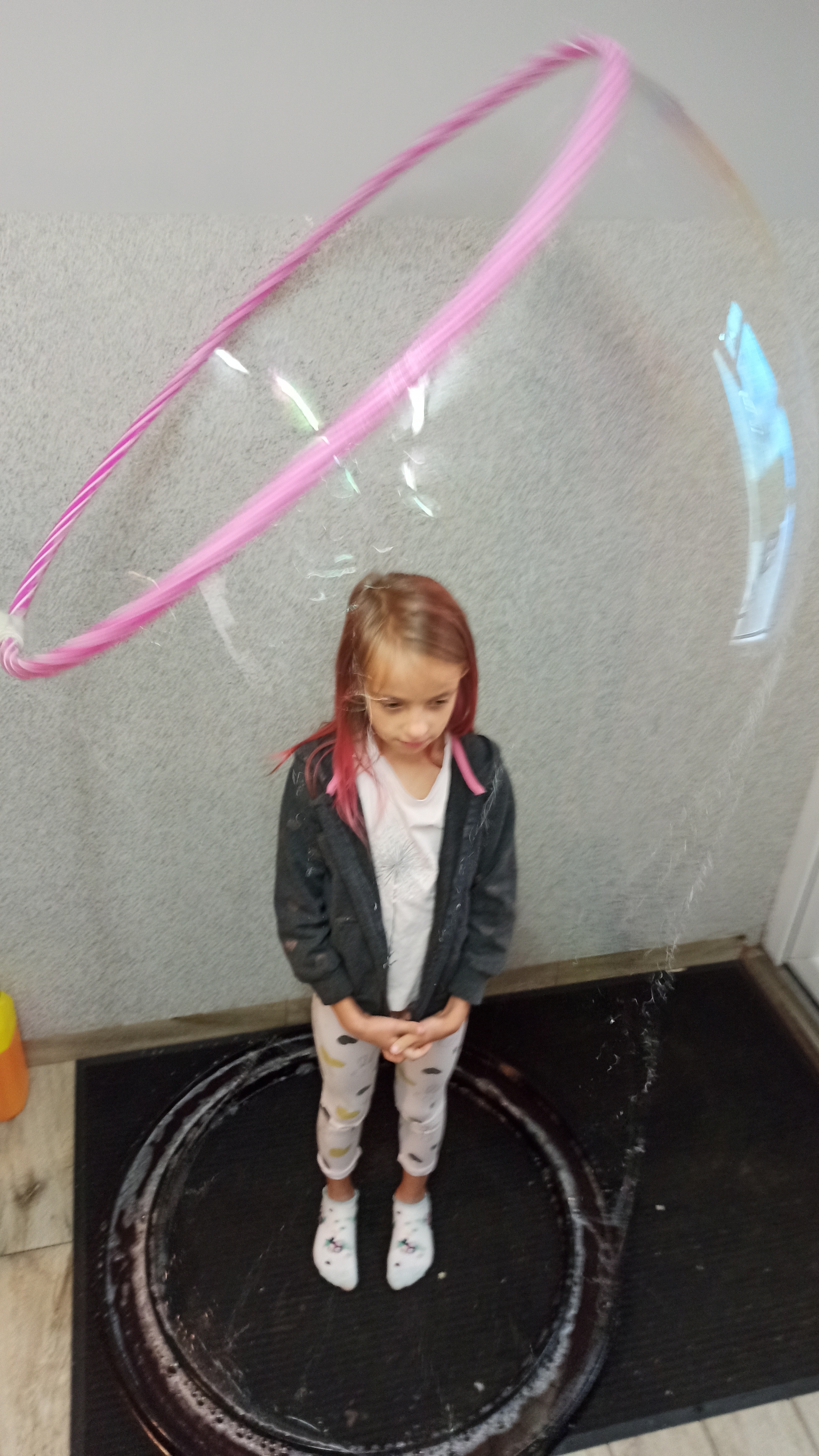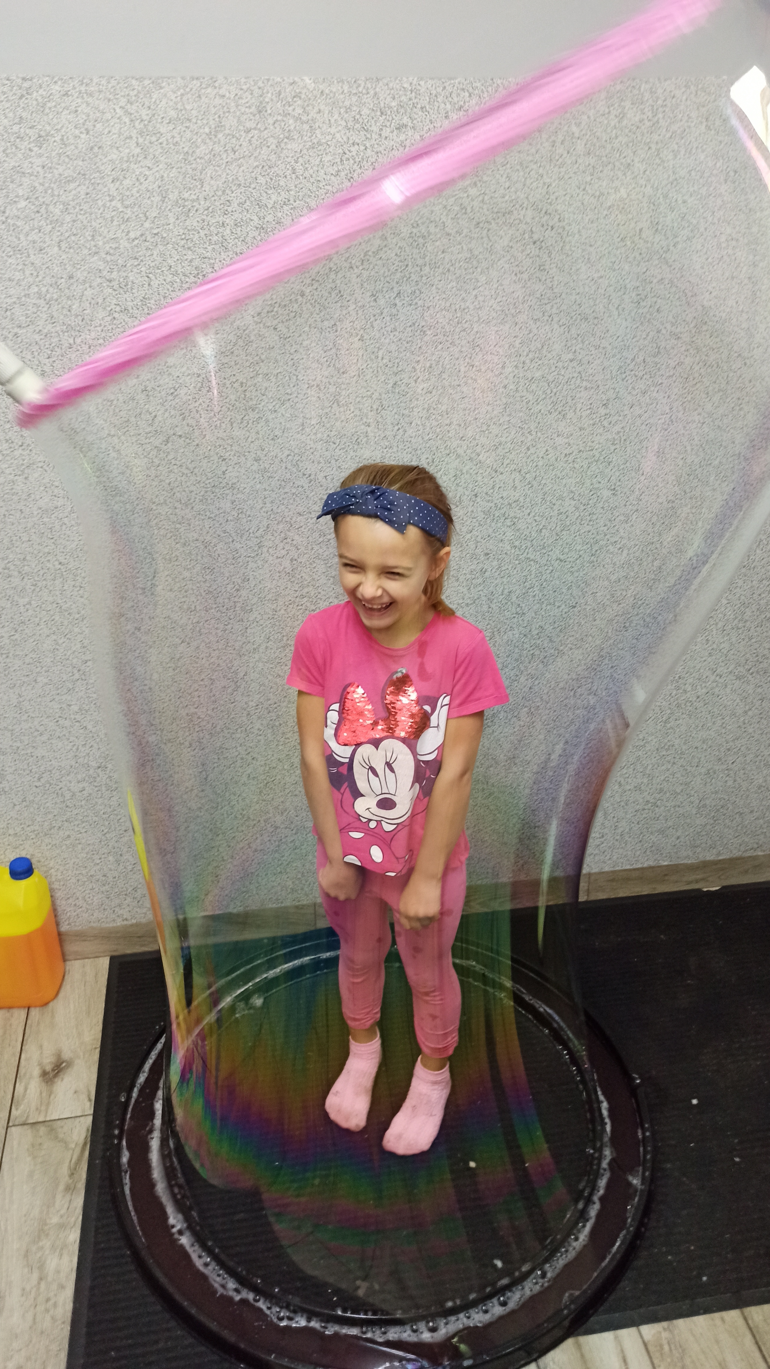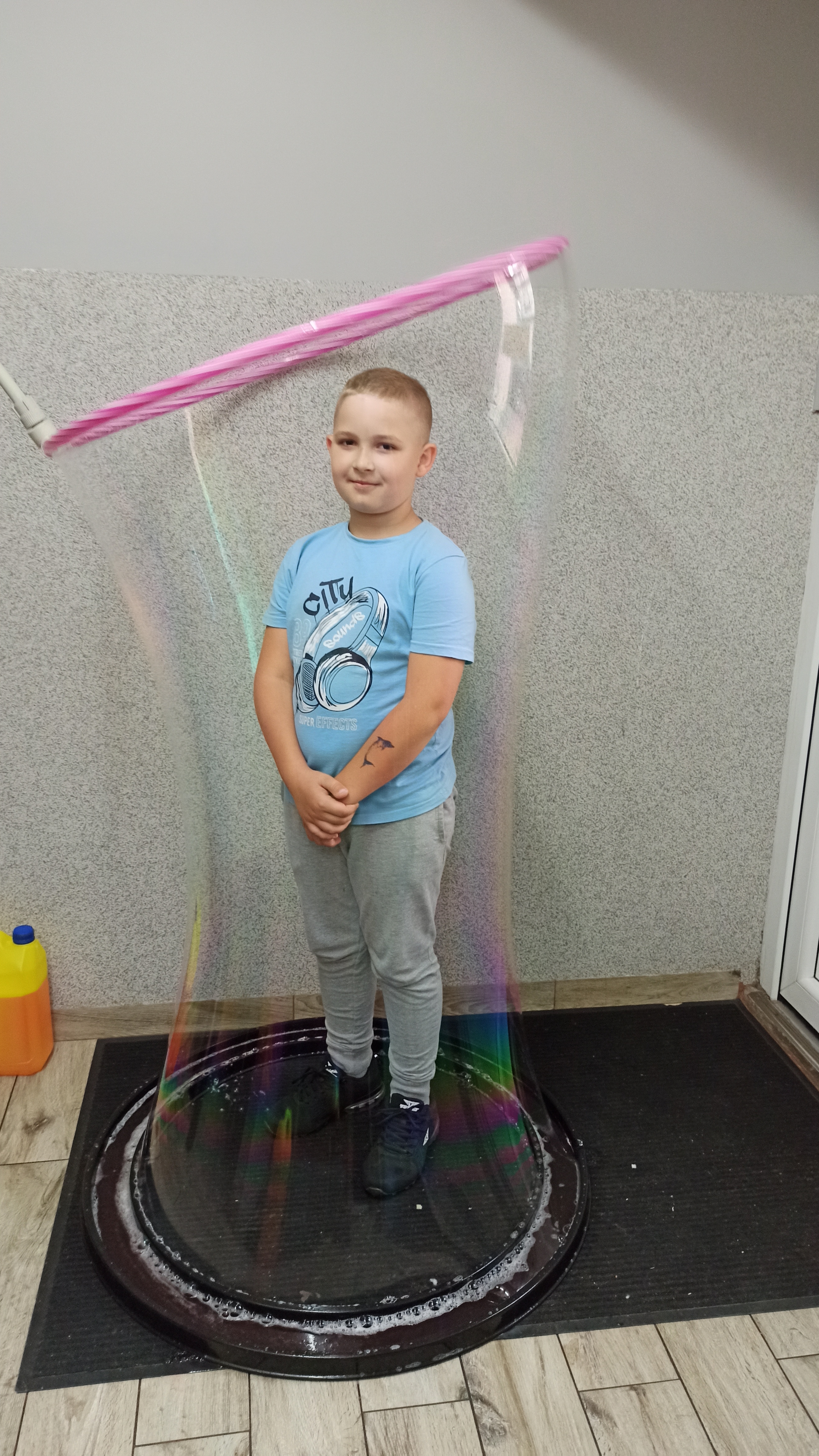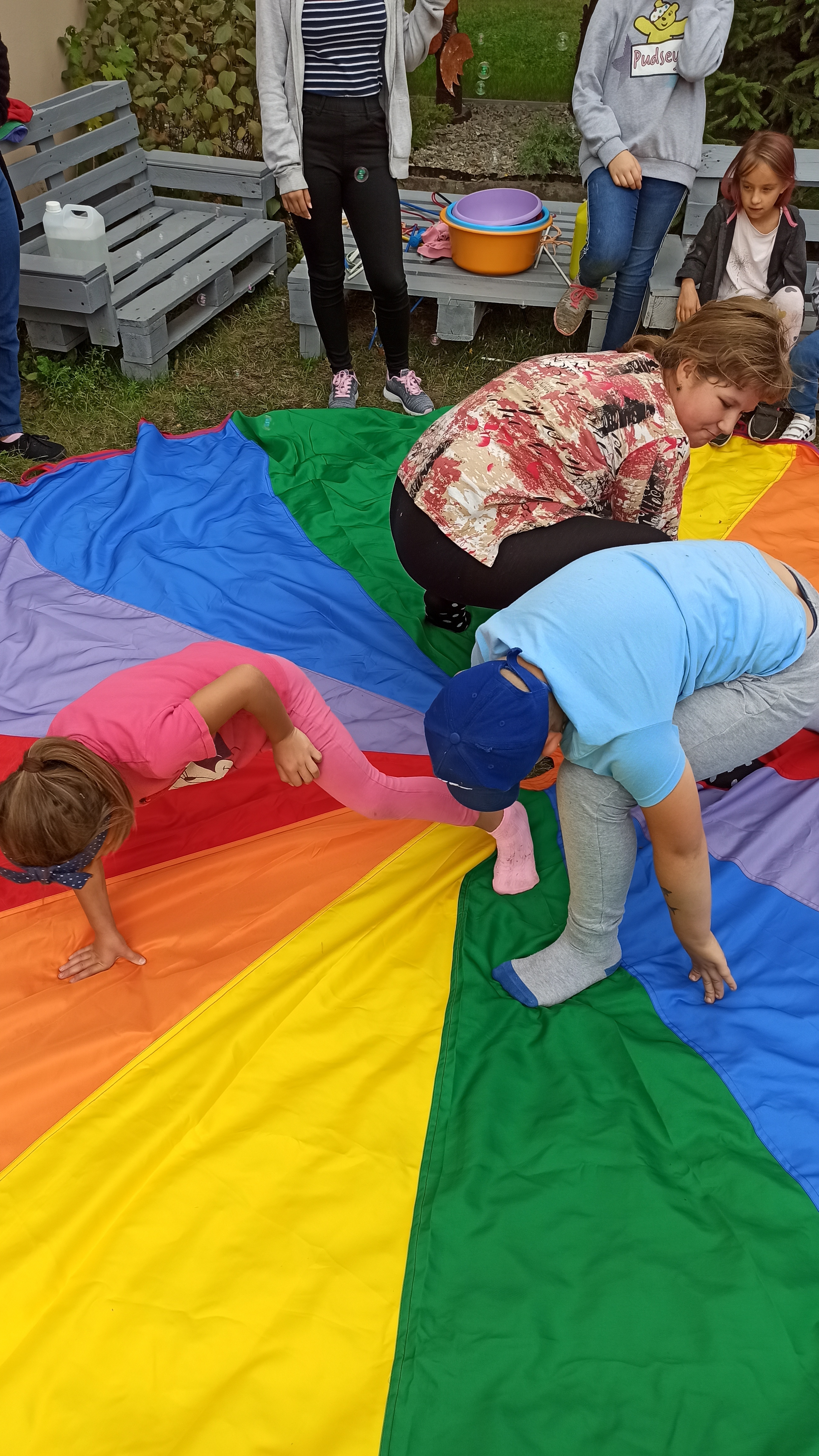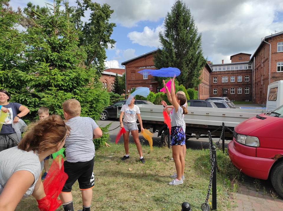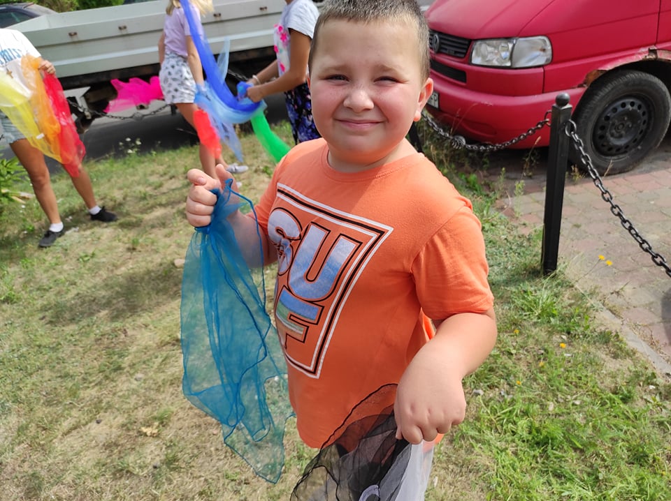Dodatkowymi atrakcjami była rozgrzewka przeprowadzona przez wychowawców placówki, wykorzystano chustę animacyjną, zamykanie w bańce, a także małe i ogromne bańki mydlane.