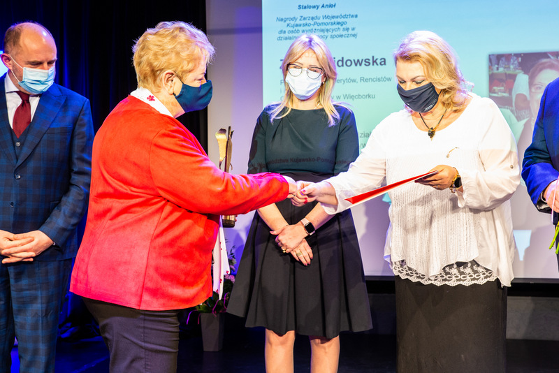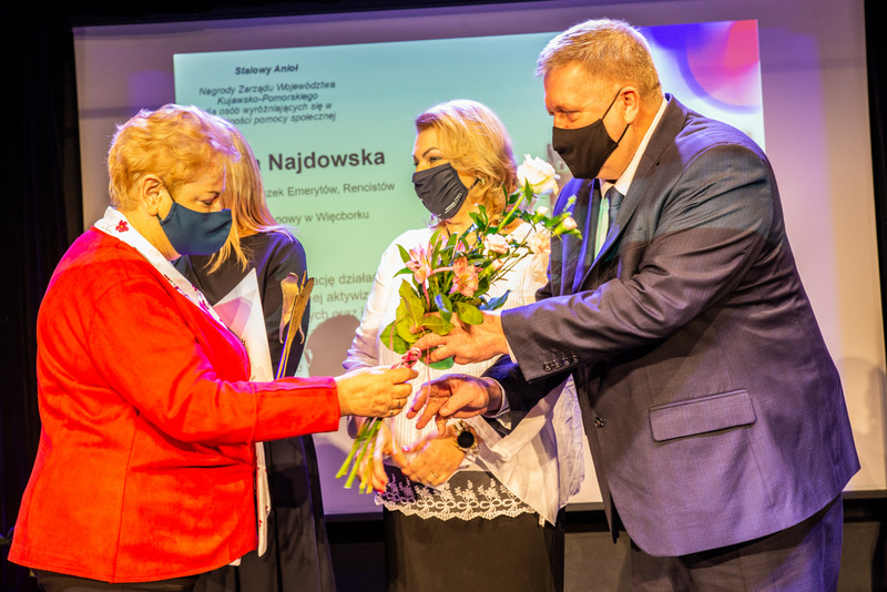 Zofia Najdowska, przewodnicząca Polskiego Związku Emerytów, Rencistów i Inwalidów Oddziału Rejonowego w Więcborku w czwartek 16 grudnia 2021 r. odebrała z rąk Marszałka Województwa Kujawsko-Pomorskiego, Piotra Całbeckiego nagrodę Stalowego Anioła. Wyróżnienie to efekt długoletniej działalności społecznej na rzecz seniorów i osób niepełnosprawnych z terenu gminy Więcbork.
