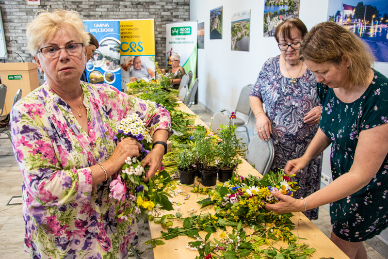 Trwają warsztaty plecenia wianków zorganizowane przez Miejsko-Gminny Ośrodek Kultury w Więcborku we współpracy z Miejsko-Gminnym Ośrodkiem Pomocy Społecznej w Więcborku. Seniorzy przygotowują się do jutrzejszego przemarszu i imprezy na Placu Jana Pawła II.