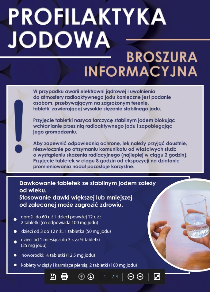 Zapraszamy do zapoznania się z broszurą informacyjną dotyczącą profilaktyki jodowej (kliknij w minaturę).