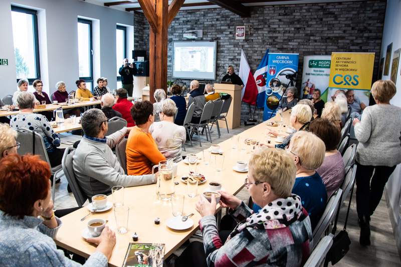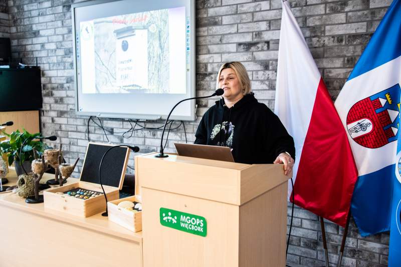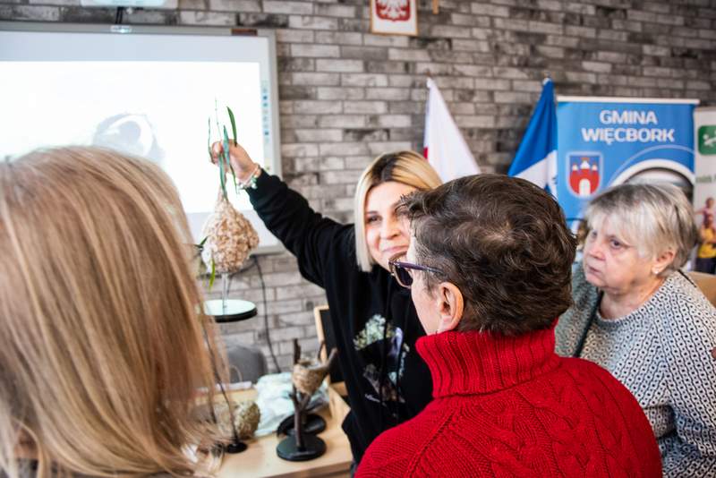 Tym razem gościem więcborskich seniorów była pani Monika Wójcik-Musiał, ornitolożka, wiceprezeska Towarzystwa Przyrodniczego KAWKA, która przywiozła ze sobą m.in. wykonane przez siebie zdjęcia ptaków, budki lęgowe, modele jaj i gniazd, a przede wszystkim ciekawą prezentację multimedialną. Po spotkaniu, pani Monika cierpliwe odpowiadała na liczne pytania seniorów.