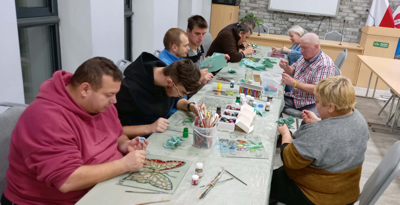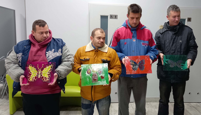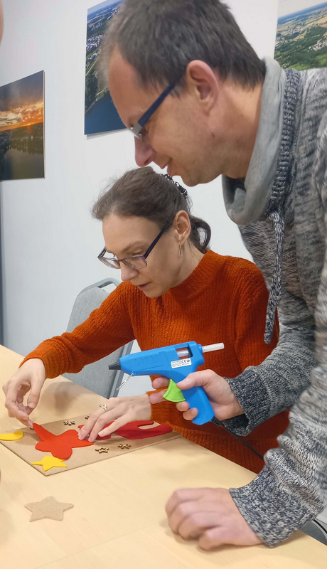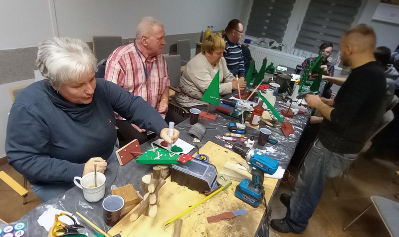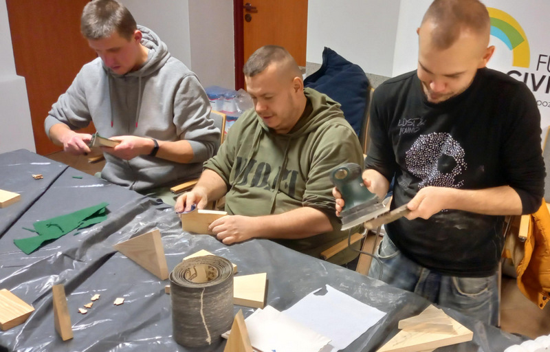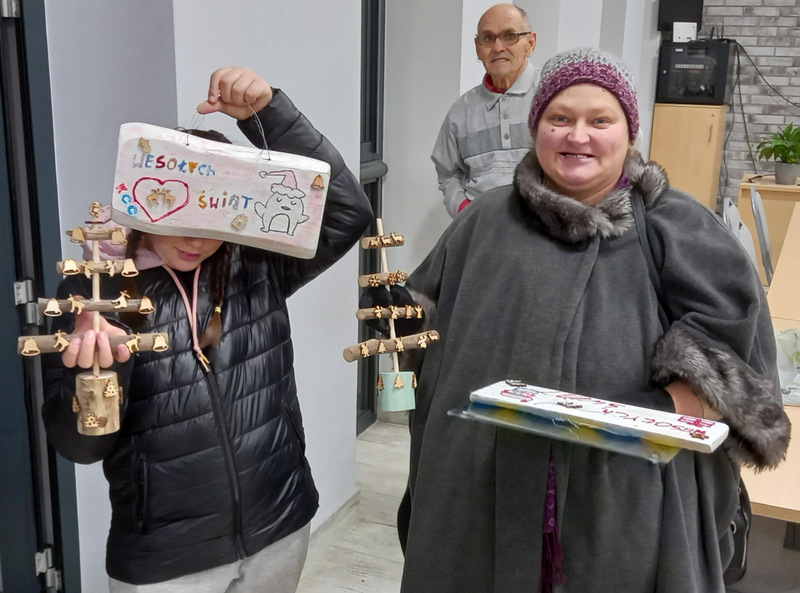 Agata Urbańska-Krasowska, Ewa Piątek i Mariusz Krasowski, członkowie Fundacji wyjątkowo trafnie odgadli potrzeby naszych gości – proponując im kreatywne i twórcze metody pracy, przy wykorzystaniu naturalnych materiałów. W wyniku niesłabnącej ciekawości i chęci eksperymentowania z różnymi materiałami plastycznymi powstały niebanalne prace, które świątecznie przyozdobiły niejedno mieszkanie.