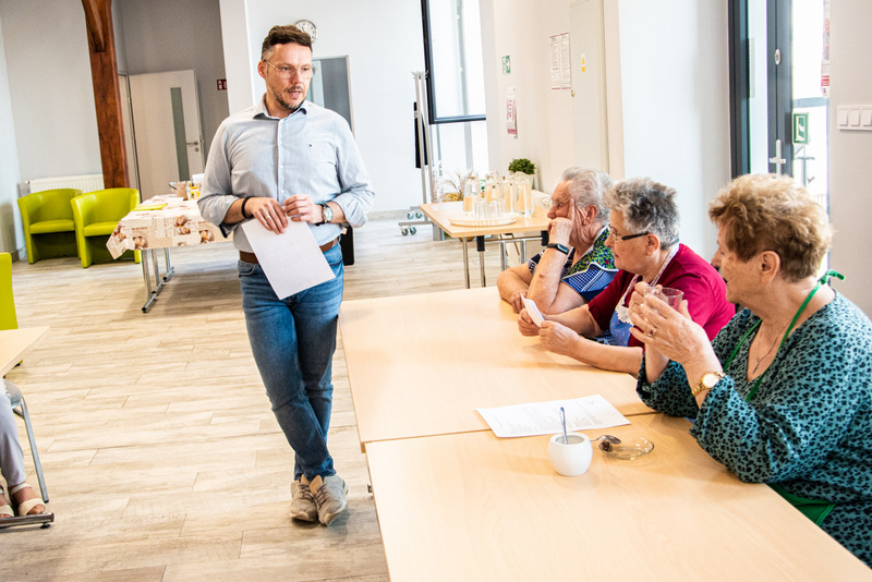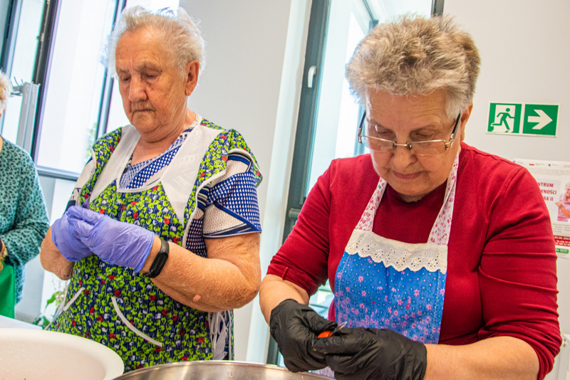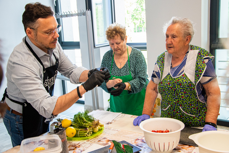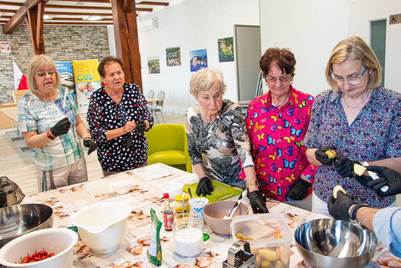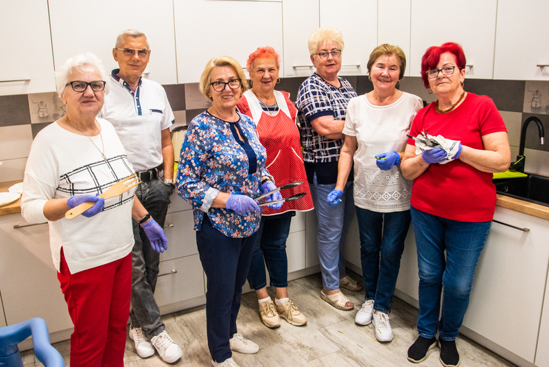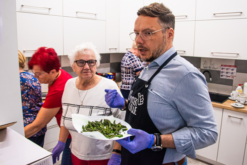 Tym razem Seniorzy wzięli udział w warsztatach kulinarnych, które poprowadził wielki pasjonat gotowania, Tomasz Siekierka. Uczestnicy zajęć przygotowywali sałatkę ziemniaczaną ze szparagami, która podbiła ich serca! Przepis na danie dostępny będzie po zakończeniu warsztatów, w specjalnie przygotowanej broszurze. Projekt dofinansowany jest z Funduszy Europejskich.