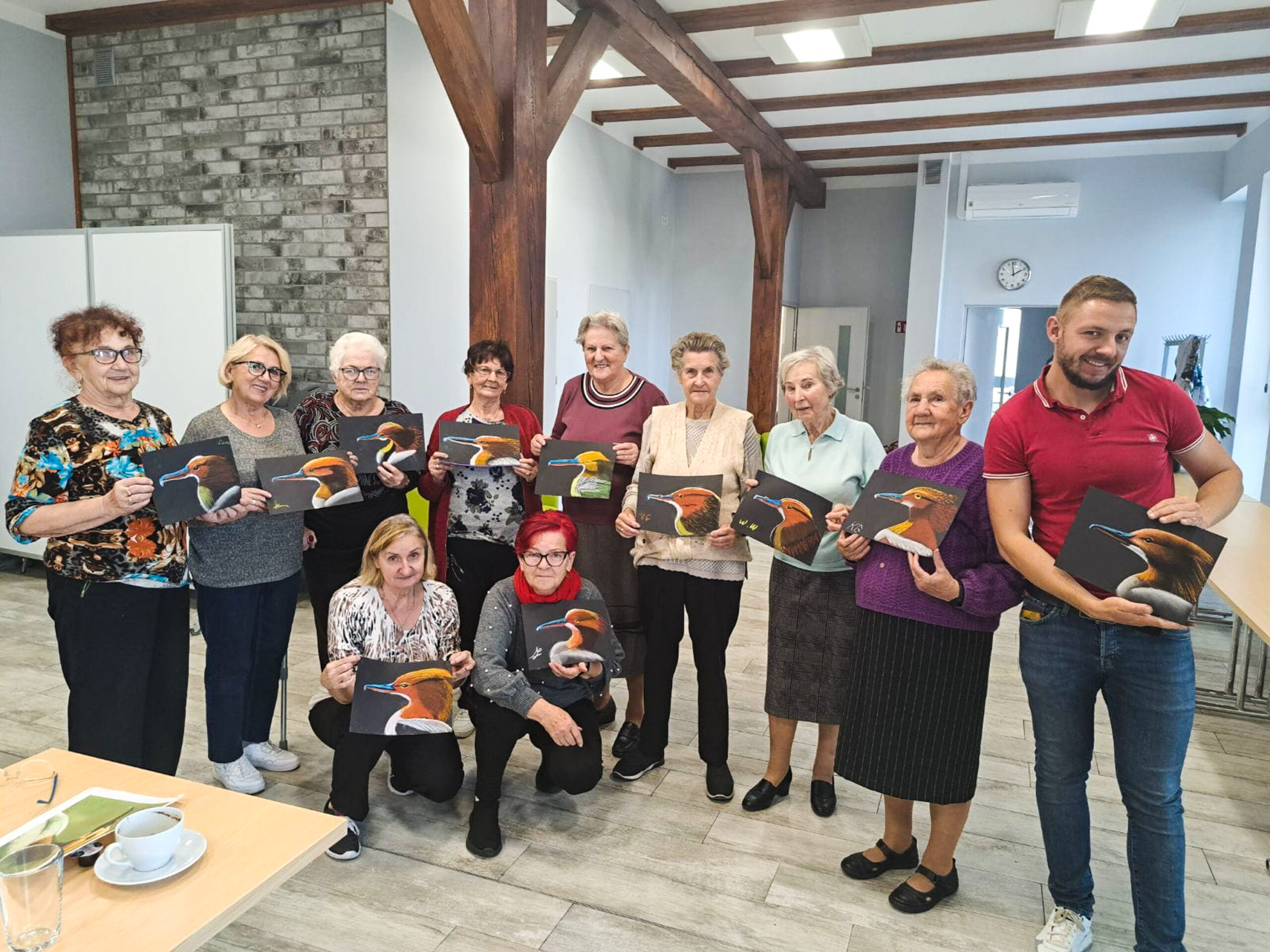 Dzięki projektom “Aktywny Senior” i “Aktywny Senior 2”, współfinansowanym z Funduszy Europejskich, a realizowanym przez Stowarzyszenie Aktywnych Społecznie w Więcborku, uczestników Klubu SENIOR+ odwiedził doskonale znany i utalentowany ornitolog, podróżnik i rysownik Dawid Kilon. Pierwsze zajęcia to spacer i obserwacja ptaków, czyli tzw. birdwatching, drugie zaś malowanie pastelami gruszki i nurogęsi.