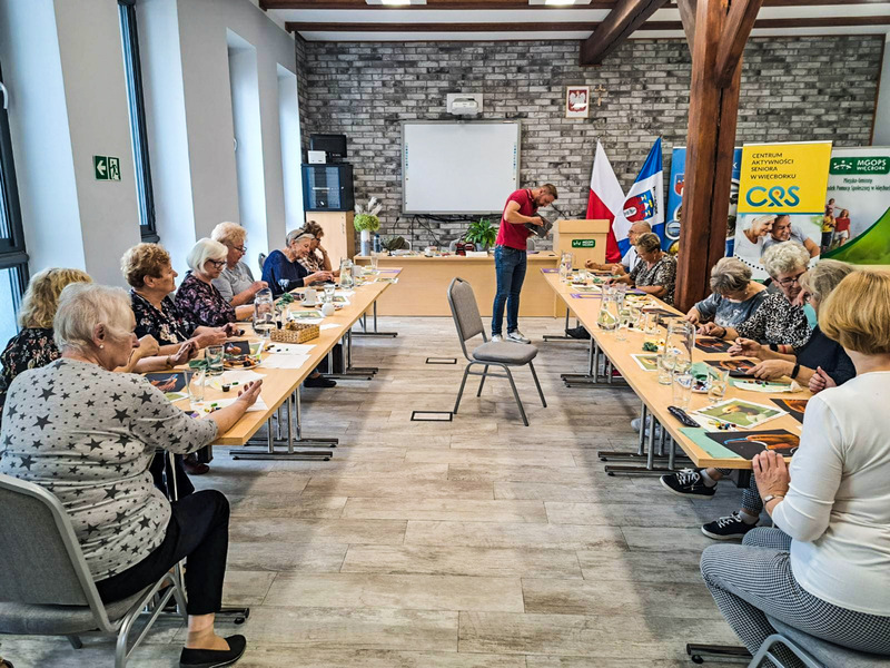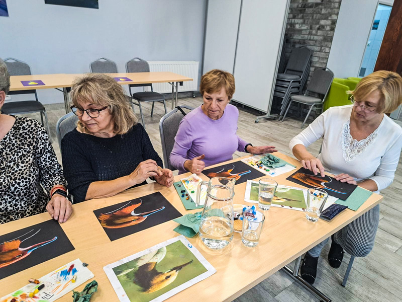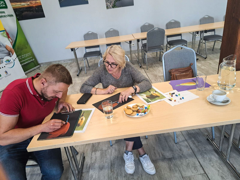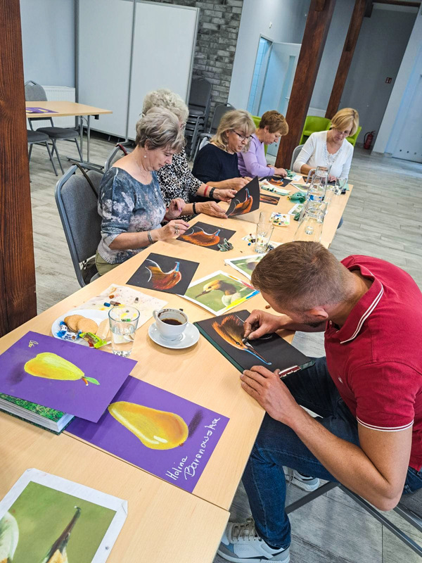 Dzięki projektom “Aktywny Senior” i “Aktywny Senior 2”, współfinansowanym z Funduszy Europejskich, a realizowanym przez Stowarzyszenie Aktywnych Społecznie w Więcborku, uczestników Klubu SENIOR+ odwiedził doskonale znany i utalentowany ornitolog, podróżnik i rysownik Dawid Kilon. Pierwsze zajęcia to spacer i obserwacja ptaków, czyli tzw. birdwatching, drugie zaś malowanie pastelami gruszki i nurogęsi.
