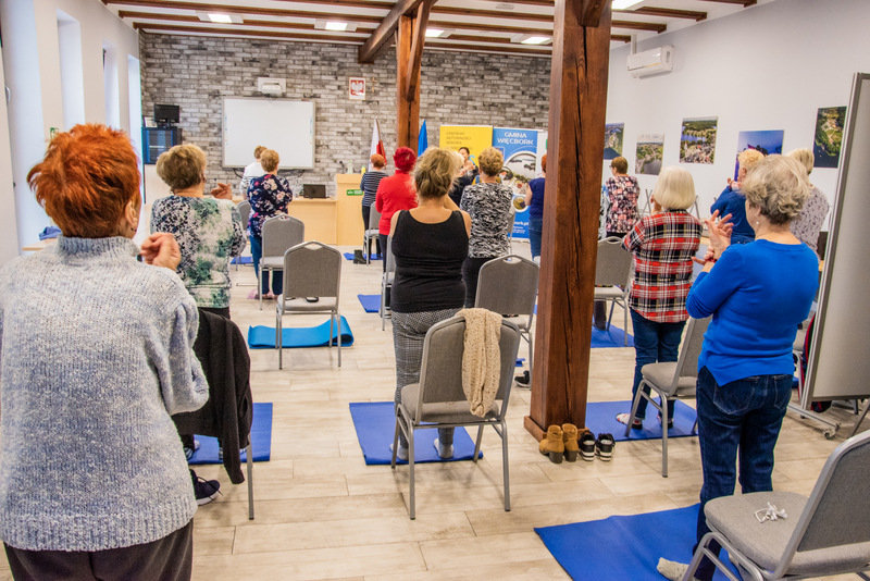 Rankiem 7 listopada 20 uczestników Klubu SENIOR+ spotkało się w Centrum Aktywności Seniora w Więcborku, by aktywnie rozpocząć dzień. Zajęcia ruchowe poprowadziła Katarzyna Kliszewska.