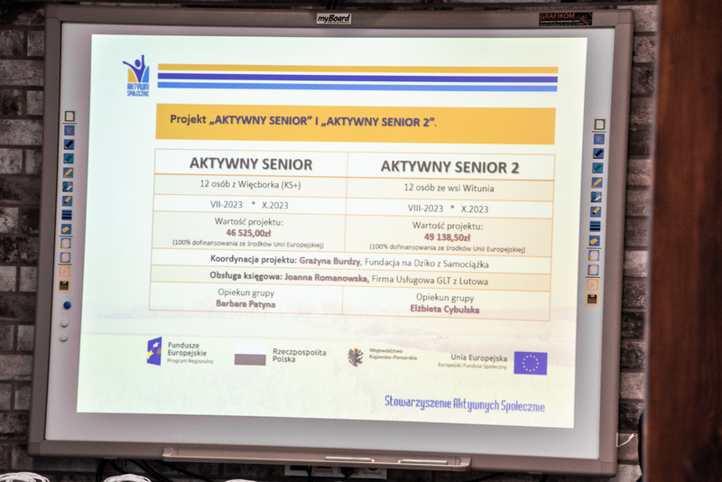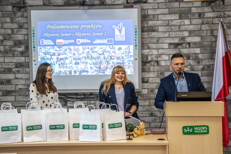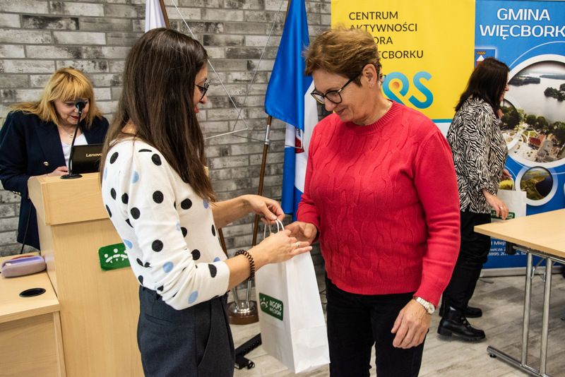 W Centrum Aktywności Seniora spotkały się dwie grupy projektowe z realizatorami przedsięwzięcia oraz partnerami. Spotkanie rozpoczął dyrektor MGOPS Tomasz Siekierka, który pogratulował Seniorom ukończenia udziału w projekcie. Podziękował też Stowarzyszeniu Aktywnych Społecznie oraz Fundacji “Na Dziko” za inicjatywy na rzecz więcborczan. Następnie z ramienia Stowarzyszenia prezentację przedstawiła Izabela Szmaglinska, wiceprezes. O swoich projektach na rzecz osób starszych z gminy Więcbork opowiedziała Grażyna Burdzy z “Na Dziko”. Podziękowano też koordynatorkom grup projektowych Barbarze Patynie i Elżbiecie Cybulskiej. Następnie nagrodzeni zostali uczestnicy projektów.