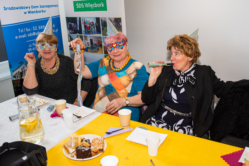 WTZ Sępólno Krajeńskie, DPS Kamień Krajeński, DPS Suchorączek, SOSW Oddział w Więcborku, Fundacja Pozytywna Energia w Jastrzębcu, Klub Samopomocy “DOMEK” w Więcborku, ŚDS w Więcborku, Klub SENIOR+ w Więcborku, te osiem grup wzięło udział w V Międzypokoleniowym Balu Karnawałowym. Łącznie 120 osób!