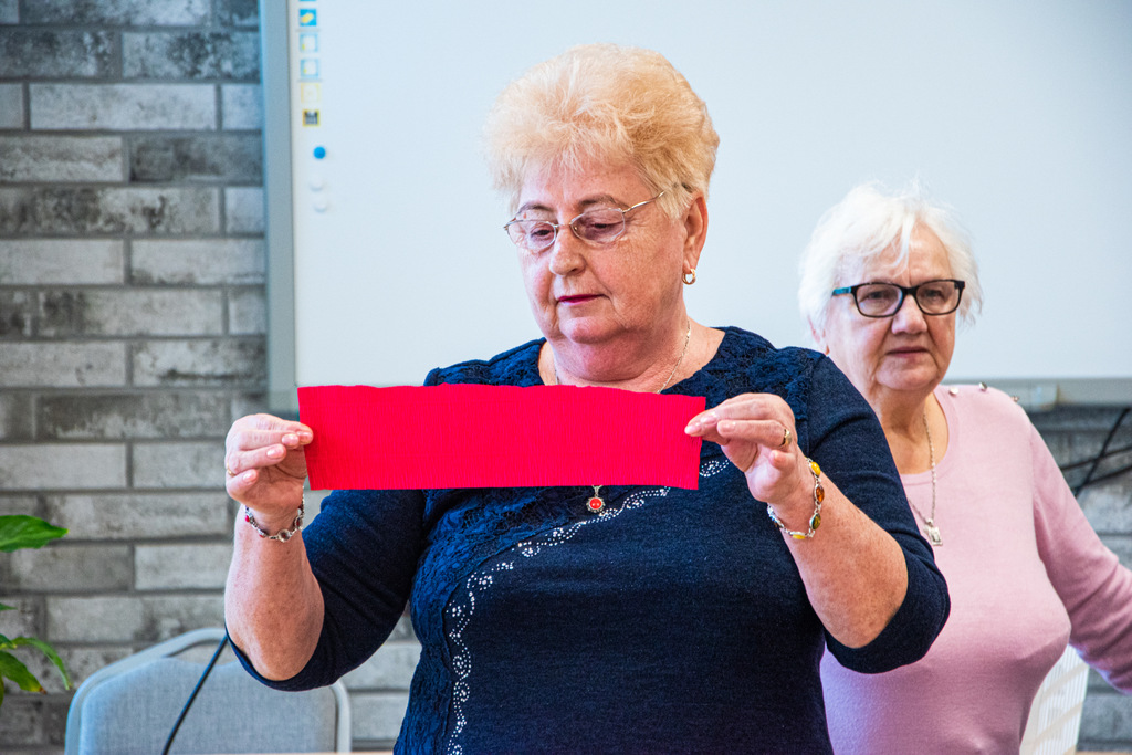 Aleksandra Banach, uczestniczka Klubu SENIOR+ poprowadziła warsztaty rękodzieła dla innych Klubowiczów. To było bardzo trudne w tak dużej grupie. Ale kto jak nie pani Ola? Po warsztatach odbyła się mini sesja zdjęciowa.
