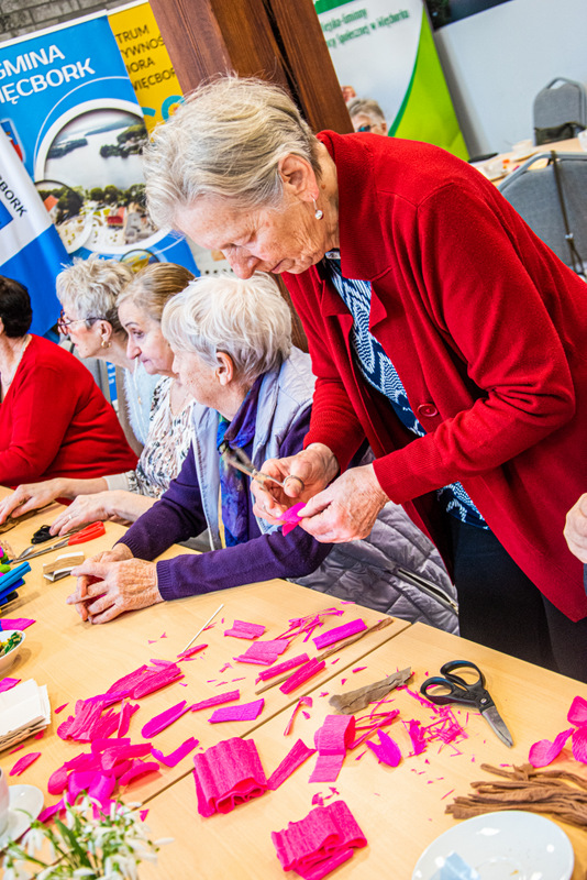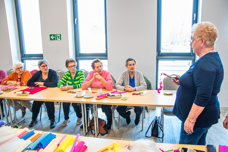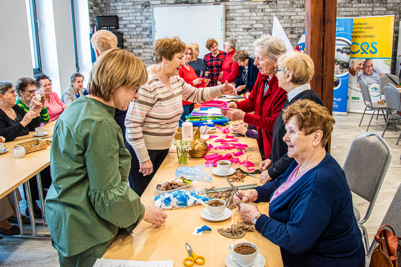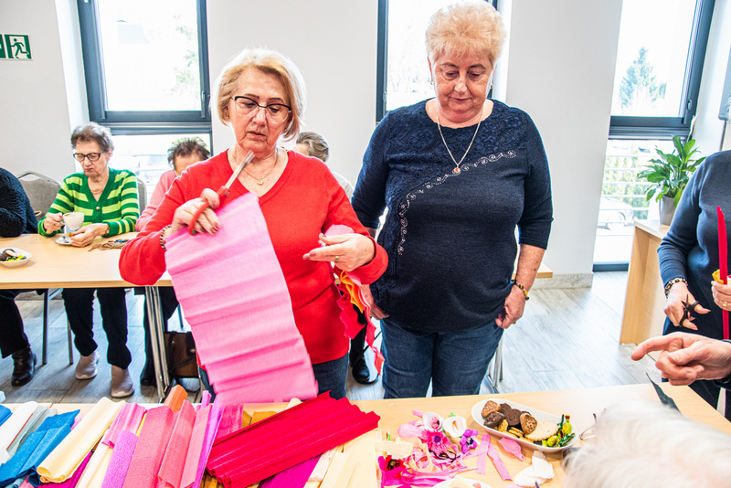Aleksandra Banach, uczestniczka Klubu SENIOR+ poprowadziła warsztaty rękodzieła dla innych Klubowiczów. To było bardzo trudne w tak dużej grupie. Ale kto jak nie pani Ola? Po warsztatach odbyła się mini sesja zdjęciowa.