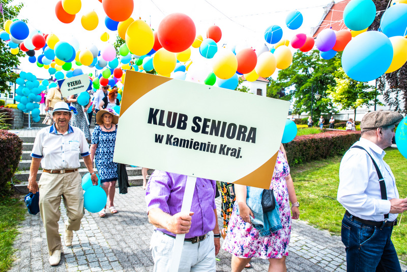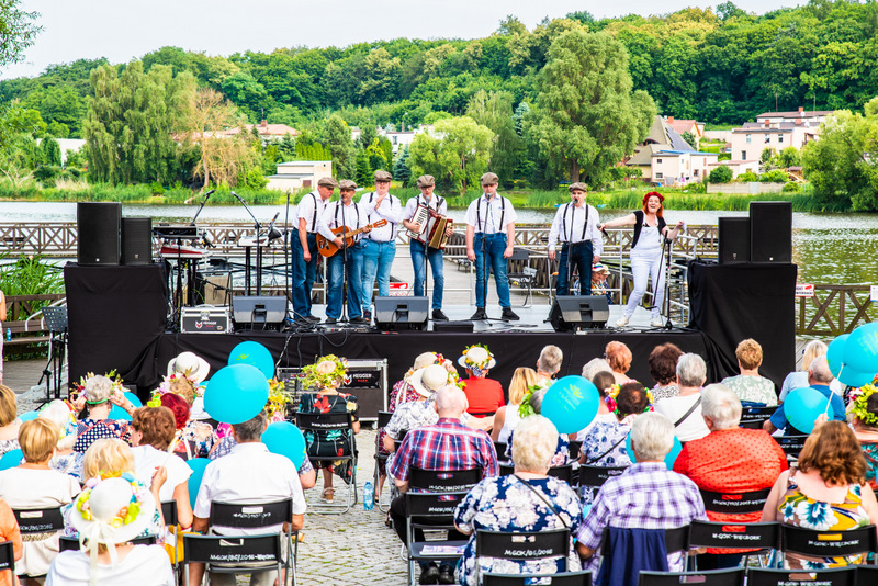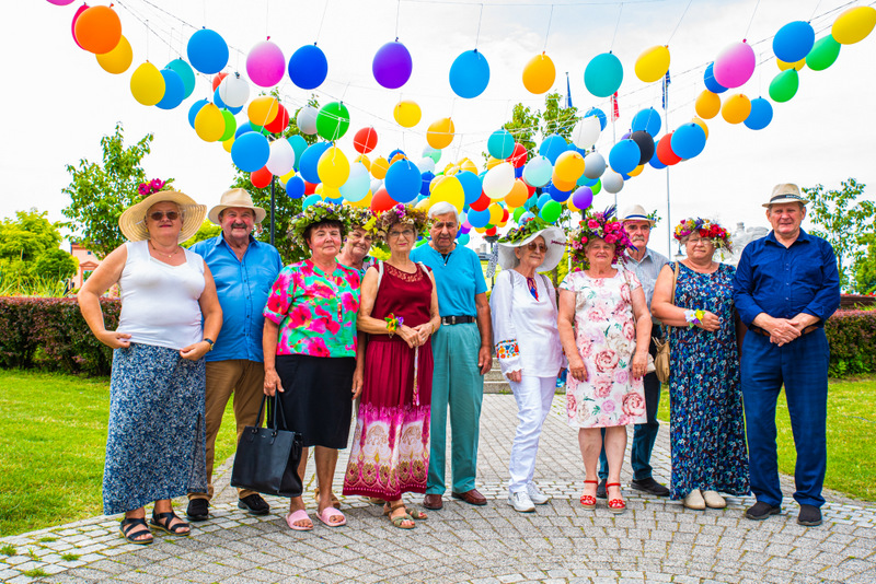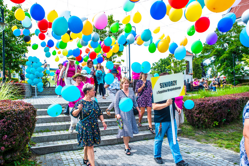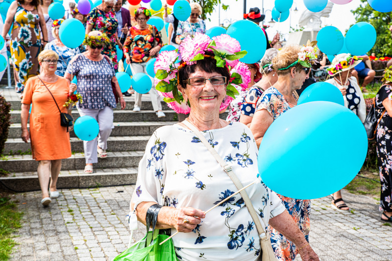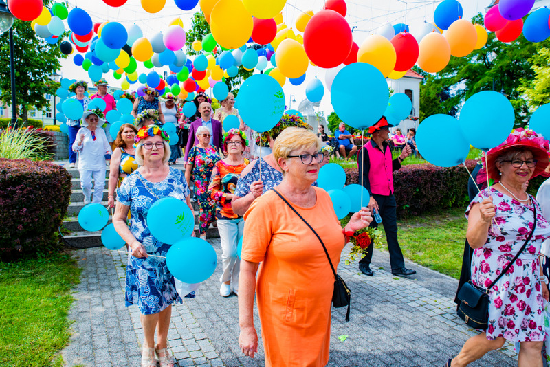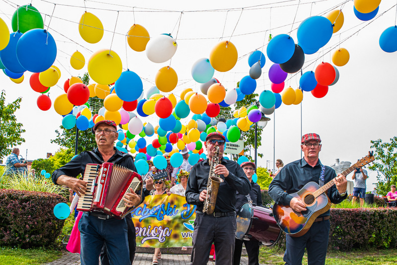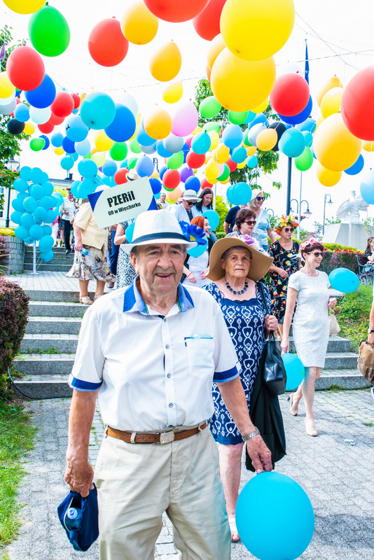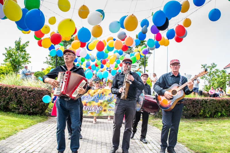 Na ulicy Mickiewicza, czekała na Seniorów wspaniała kapela podwórkowa „Szyberek”, która poprowadziła barwny korowód pod scenę umiejscowioną tuż przy molo. Serce Więcborka prezentowało się znakomicie, za sprawą balonowej dekoracji stworzonej przez Świetlicą Środowiskową „Uśmiech” w Więcborku, która przygotowała również dla każdego Seniora magnes oraz bransoletkę szczęścia.
