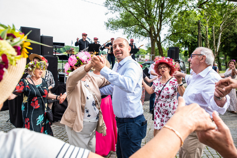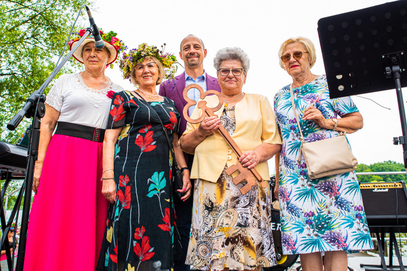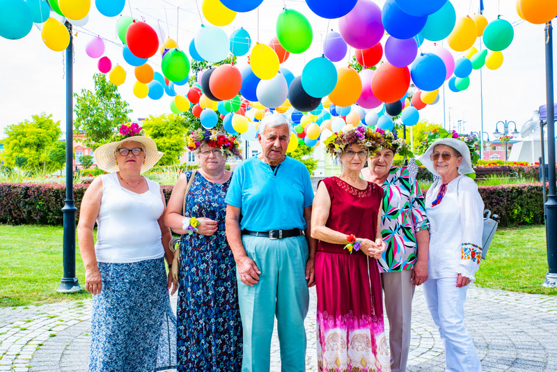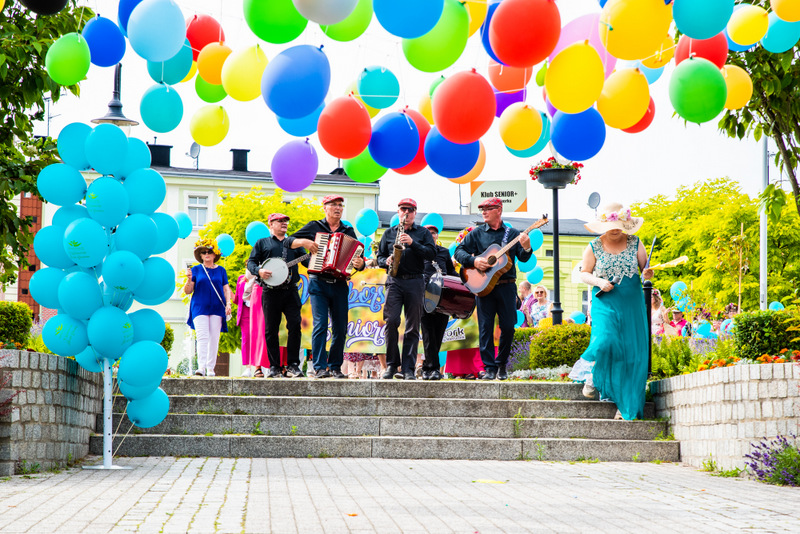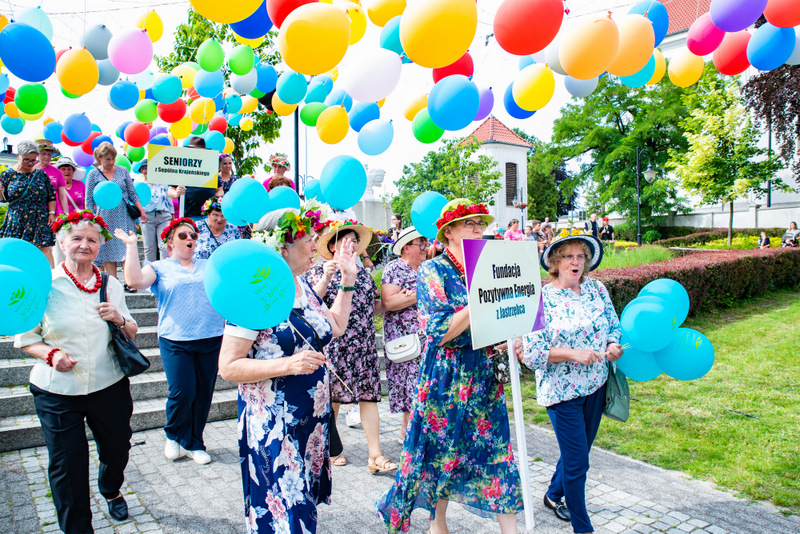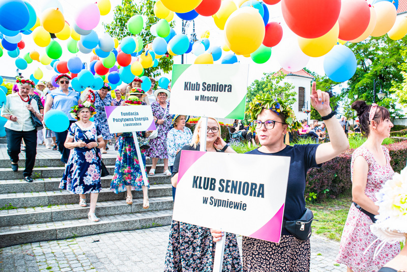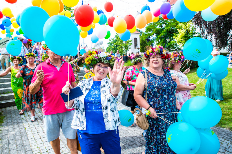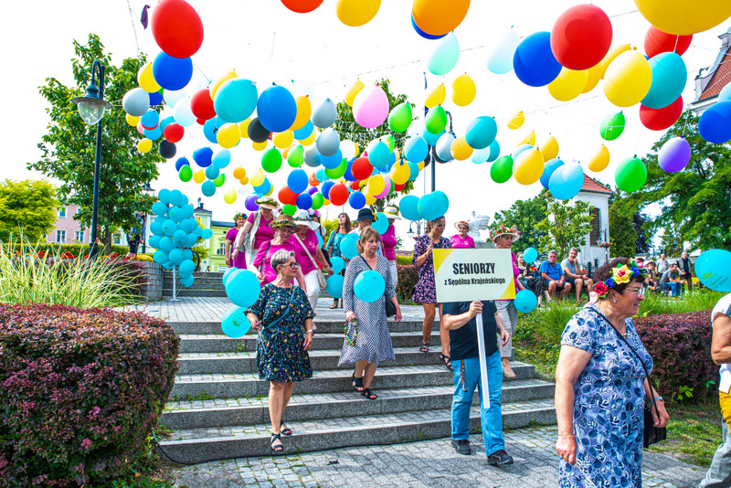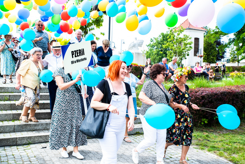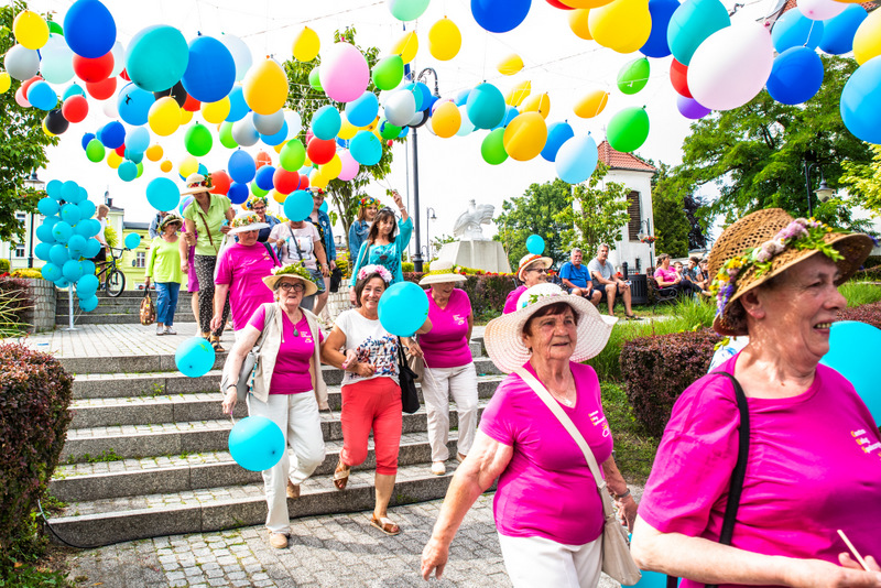 Na ulicy Mickiewicza, czekała na Seniorów wspaniała kapela podwórkowa „Szyberek”, która poprowadziła barwny korowód pod scenę umiejscowioną tuż przy molo. Serce Więcborka prezentowało się znakomicie, za sprawą balonowej dekoracji stworzonej przez Świetlicą Środowiskową „Uśmiech” w Więcborku, która przygotowała również dla każdego Seniora magnes oraz bransoletkę szczęścia.