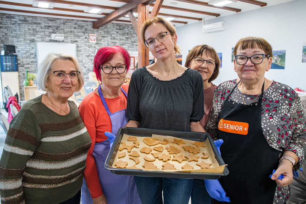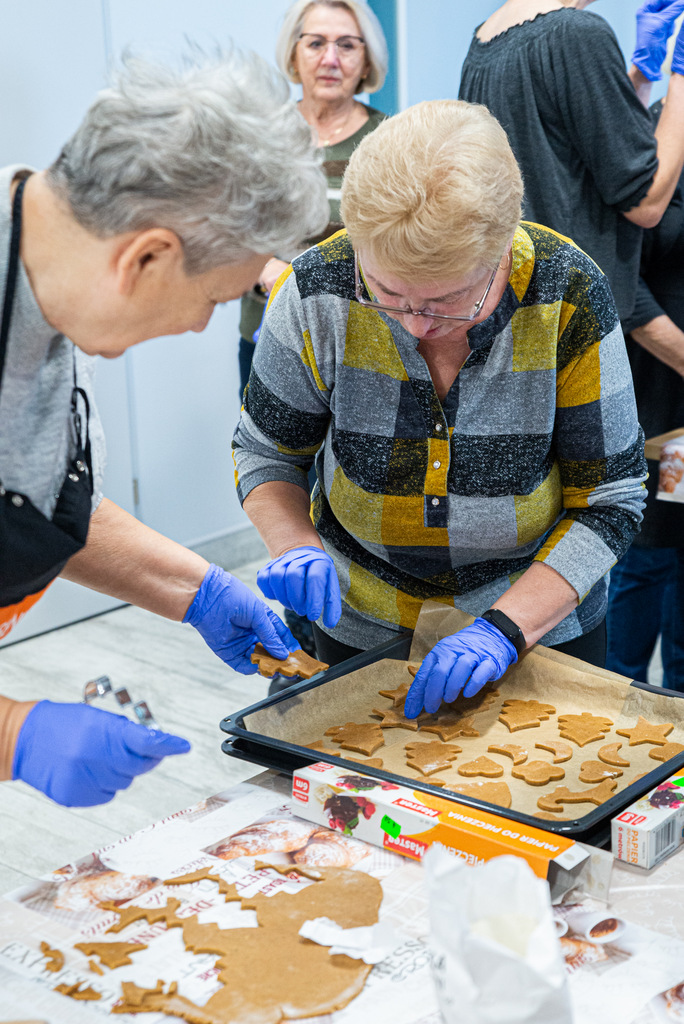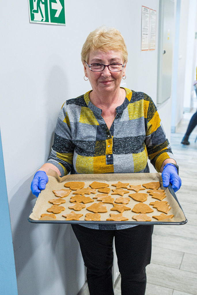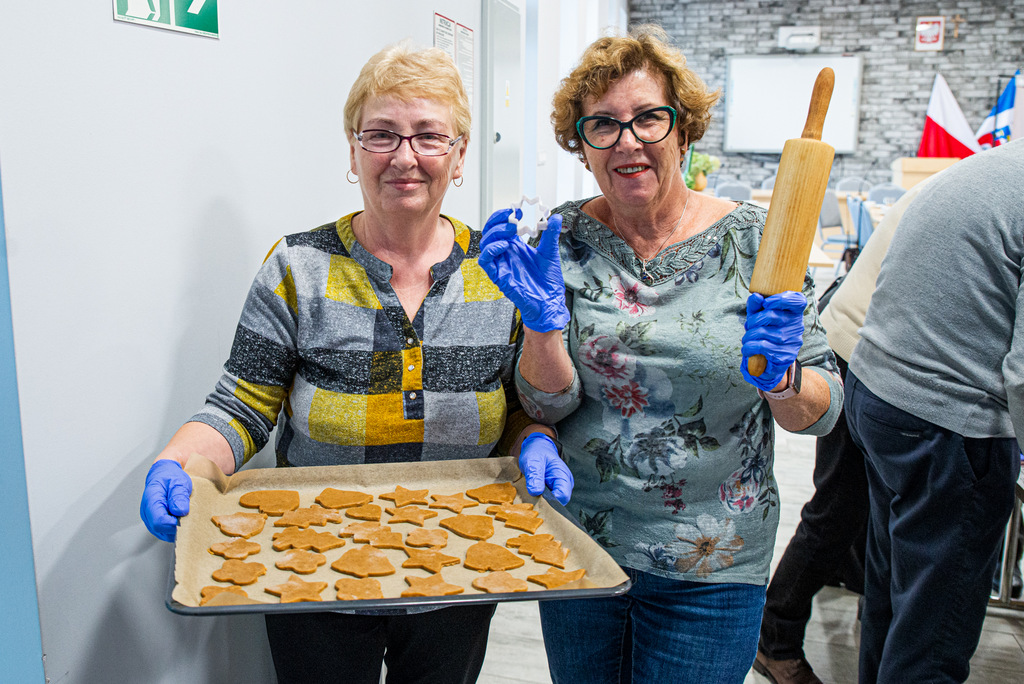 Dyrektor MGOPS w Więcborku Hanna Półgęsek wypiekała wspólnie z uczestnikami Klubu SENIOR+ pierniki, które będą rozdawane podczas Jarmarku Mikołajkowego. Magiczny zapach roznosił się w naszym Centrum do wieczora. Dzięki temu uczestniczące w popołudniowej sesji zdjęciowej dzieci ze Świetlicy Środowiskowej mogły poczuć już teraz magiczny klimat świąt.