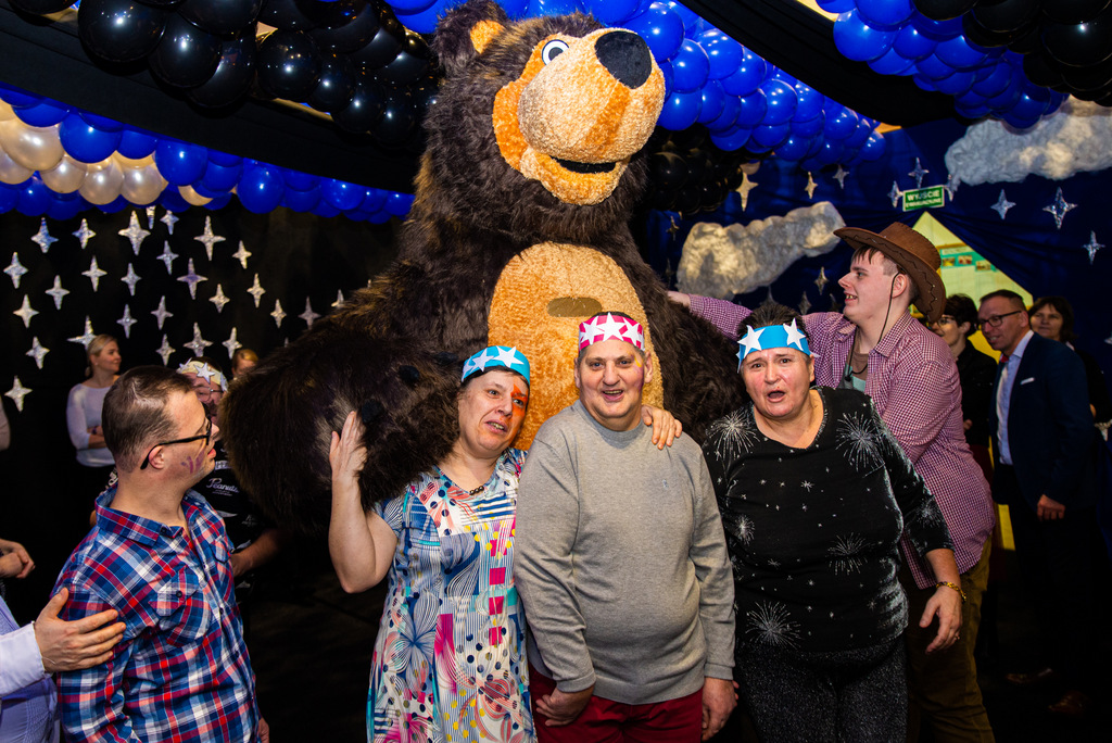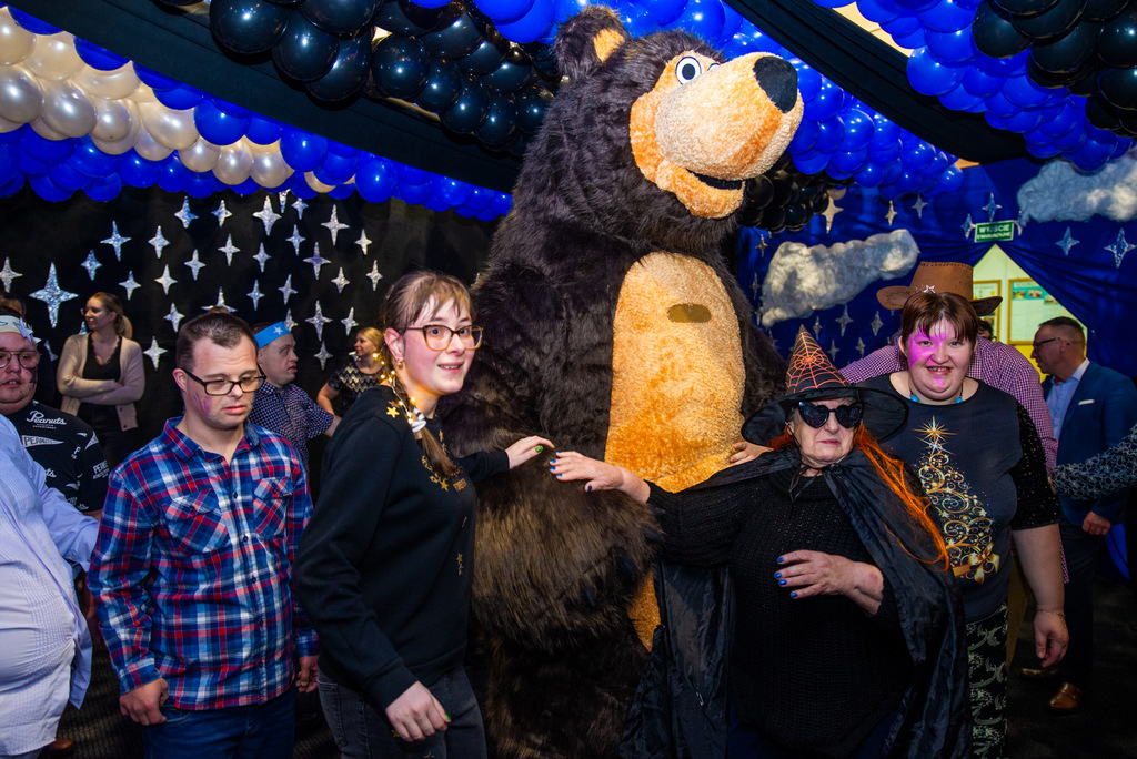 Bal poprowadziła nasza wspaniała Asia Nowakowska z DPS w Suchorączku. Jak zwykle na stołach zagościło pyszne ciasto, upieczone przez pracowników CUS. O ciepły posiłek zadbali pracownicy ŚDS. Były tańce animowane, konkursy z nagrodami, wybór króla i królowej balu oraz najlepiej przebranych uczestników, sesja zdjęciowa na specjalnie przygotowanej ściance. Jedną z atrakcji była wizyta ogromnego misia, który odtańczył z uczestnikami balu „Kaczuchy”. Najwięcej energii dał jednak występ zespołu „Fantazja” z ŚDS Więcbork.