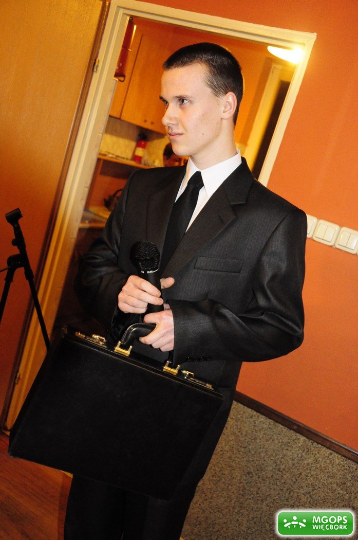 Na spotkanie zaproszono profesjonalnego Wodzireja – Pana Marcina Chmielak. Prowadzący spotkanie, okazał się osobą wyjątkowo profesjonalnie przygotowaną do prowadzenia zabaw o takim charakterze. Jego energetyczna, pełna humoru i przemiła osobowość, przeplatała się z pełnym zawodowstwem wykonywanego fachu. Nietuzinkowe pomysły, w połączeniu z niezwykłe wysoką kulturą i niekwestionowanym urokiem osobistym zachwyciły wszystkich gości, ….szczególnie Seniorki.