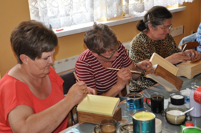 - animacyjne o charakterze warsztatów rękodzielniczych. Podczas pięciu dwugodzinnych zajęć seniorzy przygotowywali dekorację na zabawę w stylu marynarskim oraz na zabawę w stylu cygańskim. Każdy z nich wykonał dla siebie również m.in. zakładkę do książek czy też wieniec jesienny;